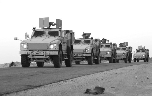9日,在也门马里卜省,支持也门总统哈迪的政府军士兵乘装甲车前进。 新华/路透