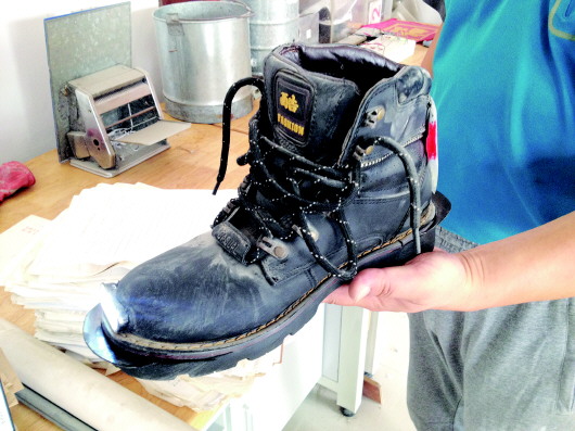 在杨强的科学实验室中,摆放着不少同学的发明创造实物和模型。杨强拿起一只看似平常的黑色登山鞋:“这叫多功能快干鞋,它的前后分别有一个硬片‘舌头’能够从鞋面和鞋底之间随意伸缩。下雨天,一位同学觉得自己的校服裤子长了,容易弄湿裤脚,便有了这一灵感。后来我帮他加以完善,又在鞋头安装了灯头,通过鞋底的机械装置,在走路时将机械能转化为电能,自动发电,可以照明。”