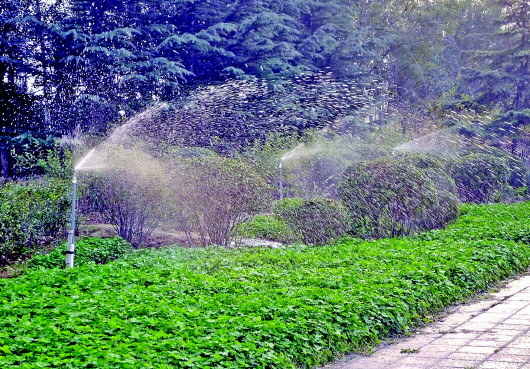 中水也称再生水,水质介于污水和自来水之间,是城市污水、废水经净化处理后达到国家标准、能在一定范围内再利用的非饮用水,可用于城市景观和百姓生活的诸多方面。目前,高新区分别在中心区和东区设立了若干中水接水点,中水并入经十东路和春晖路绿化浇灌管网,在附近绿化区铺设了地下管道,将中水直接应用于喷灌,浇灌面积达90多万平方米,同时可节省大量养护费用。