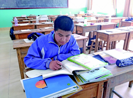 ◤空荡荡的教室,赵守杰却天天在班内自学。 记者 梁越 摄
