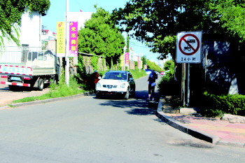 记者看到,该段马路不仅狭窄、没有人行道,马路标线也没了踪影,很多机动车走到这里随便逆行,如果遇到对面来车,很容易造成拥堵。记者联系到日照市住建局,工作人员称,将会派人去察看,而且为了缓解金海路交通拥堵的现象,金海路与济南路之间已规划一条路线,正在建设中。