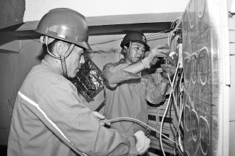 9日,威海供电公司作业人员在大岚寺生活小区对用电线路进行整理。近日,威海供电公司利用秋检时机,结合停电计划,对老旧小区的用电线路进行拉网式梳理规整,保障居民安全用电的同时,美化城市环境。