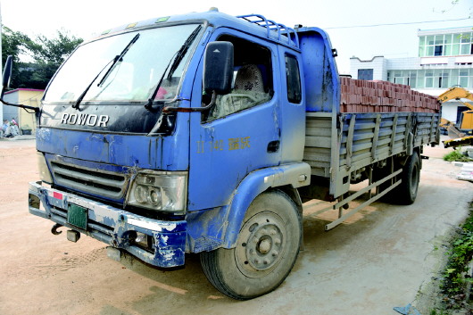 ◥肇事司机驾驶的拉砖车。