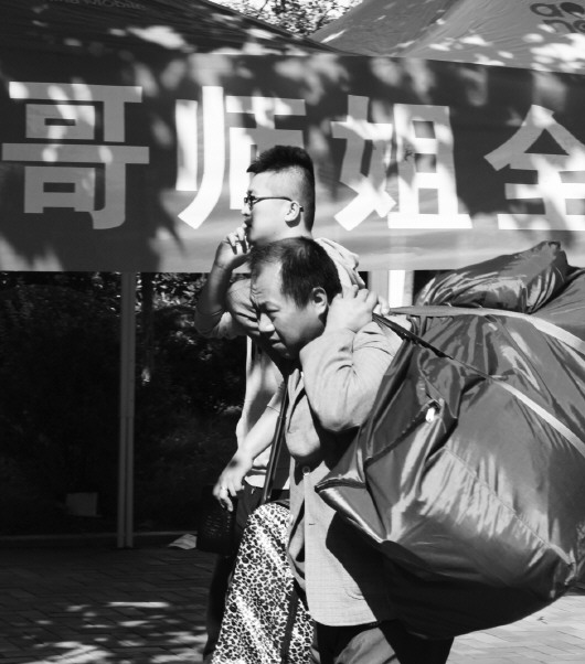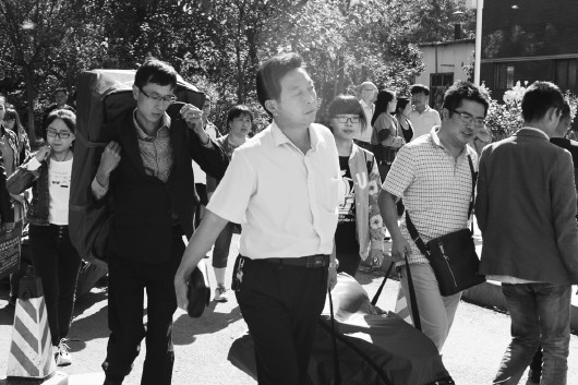 家长为孩子扛行李。 本报记者 谭正正 摄
