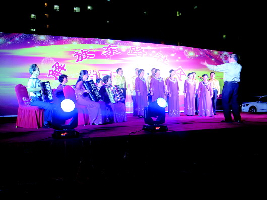 本报讯(记者 肖龙凤 通讯员 王宇) 为纪念中国人民抗日战争暨世界反法西斯战争胜利70周年,展现社区浓厚的文化氛围和社区居民热爱生活、积极进取的风貌,8月26日,解放东路社区上演了一场形式多样、内容丰富的消夏晚会。本次晚会由历下区文化局、姚家街道办事处和解放东路社区居委会共同举办。
