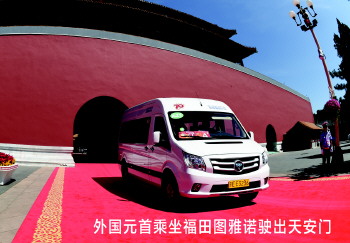 日前,在纪念抗战胜利70周年阅兵活动上,福田图雅诺作为胜利日阅兵全新一代元首接待用车、北京汽车工业和中国民族工业创新力与实力的代表,主要用于接待参与阅兵活动的各国元首及政府首脑,并以其卓越表现获得了各国元首和外交使团的交口称赞。