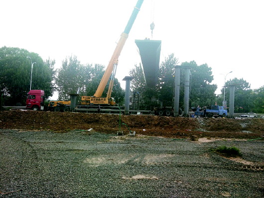 正在施工的过街天桥。本报记者 蒋龙龙 摄