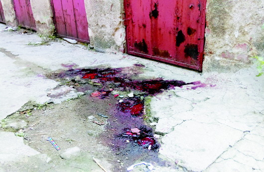 ◥储藏室门前仍有一大摊血迹。