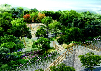 按照规划,西部生态公园是以“绚彩、康体、休闲”为主题的城市山体公园,主要景观包括“迎春送暖”,即在旌德路现有登山台阶路基础上,依自然山势营建台地休憩园;“天山康乐园”,位于旌德路入口延伸处,在现有平整场地上通过透水材质铺装、增建休憩廊架,建成一处综合健身场所;“百花涓流”,位于宁德路登山台阶处至燕儿岛路附近的山谷区域,利用现有汇水线,在空地处增加彩叶树及野花组合,以现有自然山石作水坝,雨季成水景,旱季形成旱溪景观。