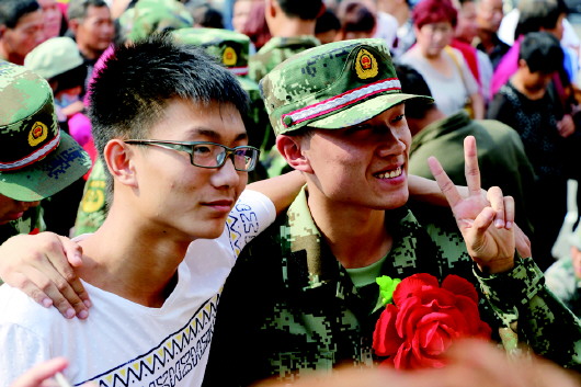 5月份,2015年征兵工作正式启动,经过初审体检、体格检查、政治考核、役前教育,滨州市确定1732名新兵应征入伍。征兵过程中有限选送高学历青年入伍,滨州市新兵中大学生共390人,占总数比例23%。滨城区、经济技术开发区、高新技术开发区共确定325名应征入伍新兵,其中大专以上学历青年为81人,占比达25%,较2014年提升5个百分点。记者了解到,2015年计划新兵起运时间为9月15日至17日。