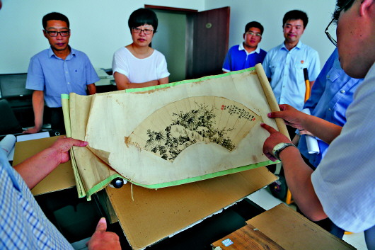 档案局工作人员正在清查追回的字画真品。本报通讯员 秦昕 摄