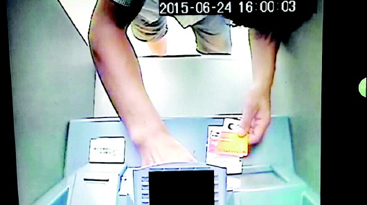 银行监控拍下的不法分子取赃款时的情景。
