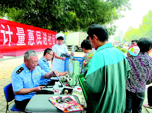 本周,章丘市市场监督管理局集中开展“质量月”计量进社区活动,计量专业检定人员走进乡村大集,为村民带来免费计量检测。图为17日上午,文祖市场监管所协同计量检定所专业检定人员正在进行免费修理、检测民用水银血压计(表)、家用衡器服务。当日共计免费修理、检测民用血压计22台件。