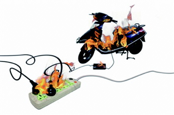 充电时线路安装问题多。在对电动车进行充电时,电气线路私拉乱扯,选用导线线径过小,未安装短路保护装置等造成充电线路发热引起火灾。