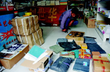 快递员正在忙碌着整理包裹。 本报记者 王鸿哲 摄