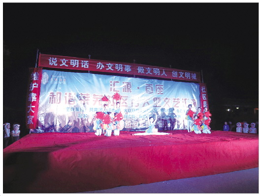 本报9月21日讯 (记者 于鹏飞) 9月18日晚,本报联合共青团莱芜市委、大众日报莱芜记者站举办的汇源·首座和谐莱芜社区行大型文艺汇演走进钢城区汶源街道洪沟社区,为社区居民奉献了一场精彩绝伦的视听艺术盛宴。这是2015年度和谐莱芜社区行的第五站。演出当晚,社区广场上被居民围得水泄不通,居民观看节目的热情高涨,活动现场还吸引了其他社区的居民来一睹演员精湛的表演。