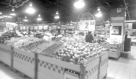 济南一大型超市里摆放的新鲜蔬菜。本报记者 朱洪蕾 摄
