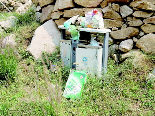 前几天和朋友一起到位于长清区的一生态旅游区游玩。在生态旅游区沿路,有的垃圾箱周围,随处可见矿泉水瓶、塑料袋、纸箱子、饮料盒等垃圾,与周围的潺潺溪流和原生态秀丽迷人的美景形成了鲜明的反差。“十一”小长假临近,到时会有众多的游客前来游玩,希望快改变形象吧。