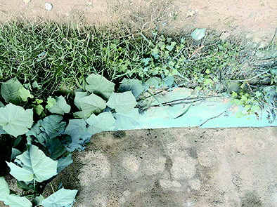 路边喷漆,植被穿“蓝衣”