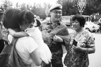 22日下午五点半,解放军第89医院赴南苏丹执行维和任务的首批四名医疗队队员从济南遥墙机场乘车回到潍坊。阔别祖国和家人10个月后,他们的领导、战友和家人用鲜花和掌声欢迎他们回家。当天下午,维和医疗队队员马克的爱人和女儿航航早早守候在现场,可是当马克下车奔向阔别已久的妻女时,四岁的女儿航航却哭着不让爸爸抱她,“你是不是不认识爸爸了?”马克激动地问女儿,可女儿只是躲在妈妈的肩膀上哭泣。这一幕让在场的不少人都流下了眼泪。
