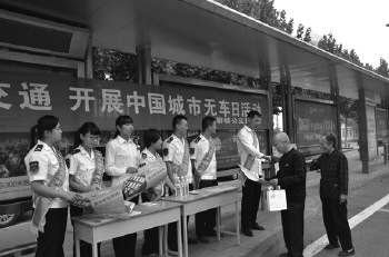 9月22日是第九个全国无车日,今年宣传周的主题为“优选公交,绿色出行”。聊城公交集团组成了两个“青年志愿者服务小组”向过往市民和上下车乘客进行公交绿色出行宣传,解答乘客咨询,散发《公交线路图》3000余张,为广大市民的绿色出行提供便利。 本报记者 王瑞超 通讯员 周正 张健 摄影报道
