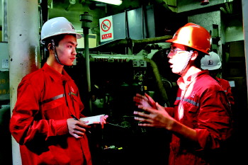 “生命高于一切!”在胜利七号钻井平台,无论是在生产区还是在生活区,大到井场施工安全、小到员工劳保用品的穿戴,时时处处都能感受到这句话的深意。从我们本次活动一开始,安全教育就一直伴随我们,登上平台之后首先观看了安全教育专题片。在谈及安全时,平台经理说到“‘化解高风险,追求零伤害’是我们的安全工作目标,我们通过多种途径强调安全教育,使安全意识真正成为‘第一意识’根植于心,我们紧抓落实,不忽视任何小概率危险事件,真正做到警钟长鸣。”在三天两夜的体验中,我也真切感受到公司从细节入手,加强安全管理,铁面严守安全的做法。