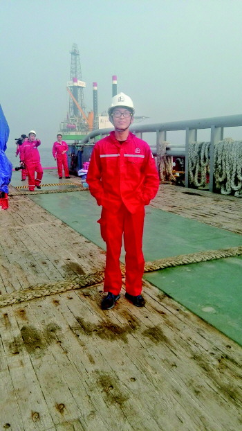 让我没想到的是,看似不大的工作区却分布着30多个工种,钻工、泥浆工、电工等等,他们将陆地钻井的原理带到了海上,却以更高的生产标准、安全标准、清洁标准进行着海上钻井。受地点、环境的约束,各工作岗位的职工十分辛劳,在钻台的职工身上沾满了油污,而在机房的职工则要一年四季忍受着高温和噪音。