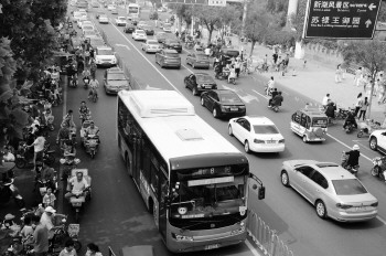 9月22日为世界无车日,德州也为此划定限行区域和时间,但中午放学时段,东方红路与湖滨大道交叉路口处与平日无异,私家车占满人行道,拥堵依旧。 本报记者 马志勇 摄