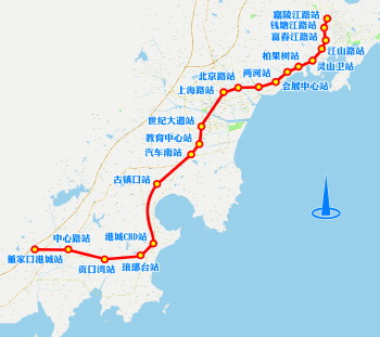 据悉,红岛——原胶南城际轨道交通去年4月下旬获发改委批复,该工程从红岛引出,沿胶州湾向南,到达终点董家口,线路长度101公里。工程将采取分期建设的方式,其中,董家口火车站至嘉陵江路站段共设置20个站点,依次是董家口火车站、泊里站、中心路站、贡口湾站、琅琊台站、港城CBD站、古镇口南站、古镇口站、大珠山站(一期终点)、世纪大道站、珠海路站、泰山路站、北京路站、朝阳山CBD站、东方影都站、黄海东路站、灵山卫站、嘉年华站、井冈山路站(一期起点)、嘉陵江路站。