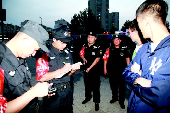 21日晚,城阳警方开展巡逻盘查。 通讯员 栾云海 摄