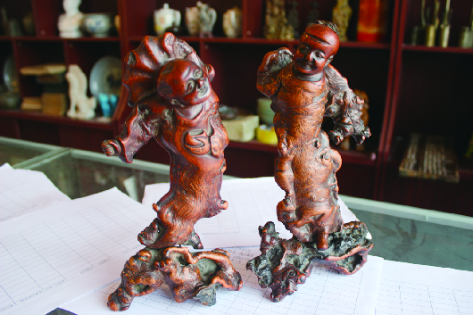 ◤哈哈二仙根雕:清代,由树瘤雕刻而成的“哈哈二仙”,除面部有人工雕刻的痕迹之外,其余都是自然形成,雕刻部位做工精致,面部表情非常形象。参考价格:3万元
