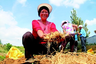 22日,不少游客来到文登区张家产镇采摘基地体验采摘西洋参。当日,首届中国(文登)西洋参文化节启帷,来自国内加工企业、销售客商和专家200多人参加。