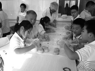 中秋节临近,21日,鲸园小学的学生们与威海市第二军休所的老干部们及鲸园街道办六个社区的工作人员,一起做月饼、灯笼迎中秋。