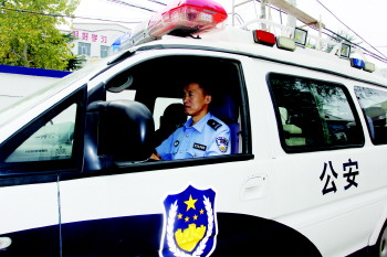 闫守军开着警车在路上巡逻。 本报见习记者 李洋 摄