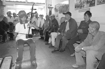 22日上午,在莱阳市城厢街道办事处敬老院,莱阳市第二实验中学的学生正在表演二胡独奏。当日,第二实验中学的30余名师生带着月饼、葡萄到这里慰问近百名孤寡留守老人。该校学生还表演了二胡独奏、陶笛独奏、独唱、小合唱等自编自演的文艺节目,在中秋节前夕给孤寡留守老人送去一份关爱和祝福。