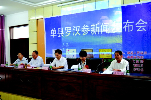 本报单县9月23日讯(记者 张秀问 通讯员 冉清晨) 9月18日,单县罗汉参新闻发布会在县农业局举行。县人大常委会副主任曹丰月、县政府副县长李军、县政协副主席曹凤琳、县农业局局长徐法宽出席了发布会。