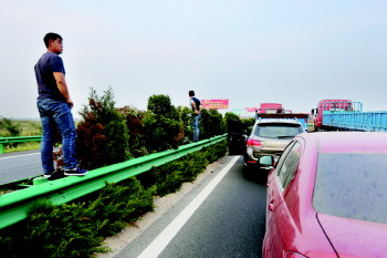 23日下午5点左右,青兰高速青岛方向拥堵严重,绵延五公里的路上停满了车辆,一个多小时挪不了一部。很多司机只好下车到路边走动、聊天打发时间。据了解,当日该路段发生过一起交通事故,再加上临近双节,前往市区的车辆急剧增加。