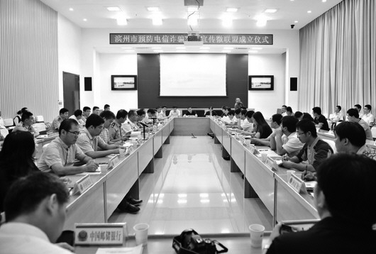 滨州成立全国首家预防电信诈骗公益宣传微联盟现场。