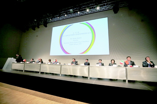 米兰世博会上,山东企业直面欧洲市场。图为米兰世博会山东周组委会主任王军民在山东-意大利经贸合作交流会上致辞。