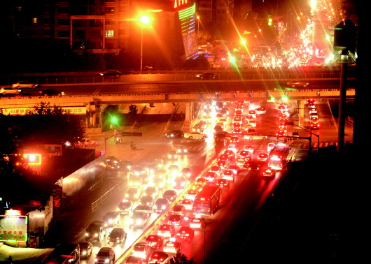 23日晚8点,济南市浆水泉路双向车流出现少见的拥堵,中秋节临近,走亲访友车辆明显增多。 本报记者 郭建政 摄