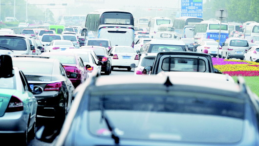 中秋节临近,济南市区内很多道路早晚高峰时分几乎成了停车场。 本报记者 周青先 摄