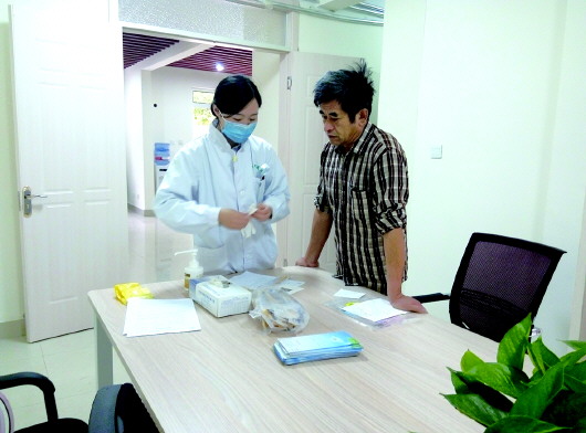 王医生在给看牙居民讲解爱牙护牙知识。本报记者 孙业文 摄