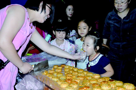 而在月饼品尝区,工作人员也都会招呼路过的居民品尝一下,“这些月饼都是社区的小朋友自己做的,味道很好,可以品尝一下。”工作人员表示,上周社区的小朋友与社区工作人员一起制作了一部分月饼,这些月饼也在游园会活动现场免费让居民品尝。