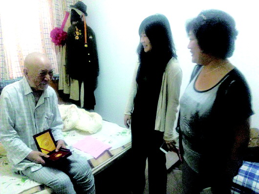 8月31日,在中国人民抗日战争暨世界反法西斯战争胜利70周年来临之际,为牢记烽火历史,忆难忘峥嵘岁月,话革命精神传承,感恩抗日战争老兵。文东街道办事处科室包居领导邹卫红在社区工作人员陪同下,来到抗战老兵房军、徐永芳的家中,给两位受人尊敬的老兵送上了纪念章和慰问品,并详细询问了他们目前的生活、身体状况和抗战时的情形,感谢他们为保家卫国作出的重大贡献,并送去党和政府的亲切关怀与祝福。 (记者 崔岩 通讯员 刘倩雯)