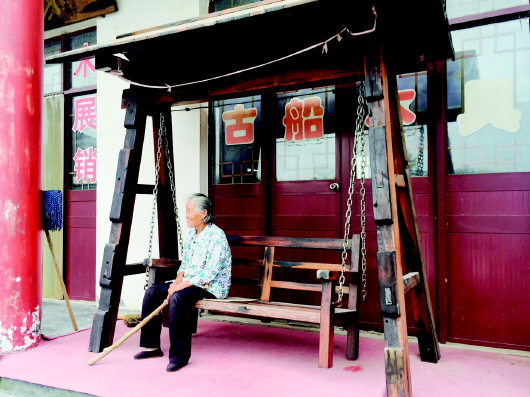 坐在古色古香的老船木摇椅上,这位老人的思绪被带回了年少时光。