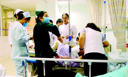 27日,中秋之夜,千佛山医院急诊室内医生和护士们正在忙碌着。虽是团圆之夜,急救人员不时送来各种情况导致的危急病人,医生护士们必须坚守。 本报记者 周青先 摄
