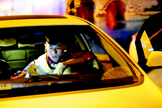 娄子阳去年9月份结婚之后,开始了代驾的兼职生活。他每天白天下班后,都是匆匆吃个晚饭就出门,常常都是凌晨两三点回家,有时还会通宵。他说,为了家人更好地生活,自己宁愿多吃点苦。 本报记者 王媛 摄