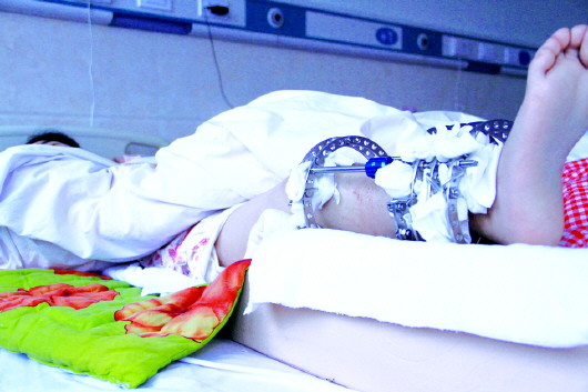 由于钢板在外面裸露了十几年,导致骨头畸形,小郝现在两条腿的长度都不一样了。现在医院给她安装了延长器,每天把较短的那条腿延长一毫米,张院长说现在她的病情比较稳定,恢复得也很理想。