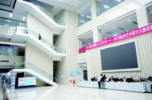 其实,齐鲁工大图书馆不只是图书馆,同时还是展览馆、博物馆,可以说是“三馆合一”。比如二楼,不仅是书刊的集散地,它还有非常重要的“展区”功能,自2013年新馆开馆至今,已经举办了二三十场大大小小的展览、报告和会议。各类鲜活生动的师生作品展在这儿隔三差五轮番上演,如“非遗”走进齐鲁工业大学展览活动、林诗瑶油画展、山东艺术设计大赛优秀作品展等等,众多展出精彩纷呈,启迪灵智,让人在潜移默化中接受文化的熏陶,也是一种另类的“阅读”。
