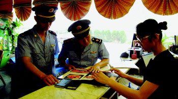 28日,工商部门检查开展团购活动的饭店。